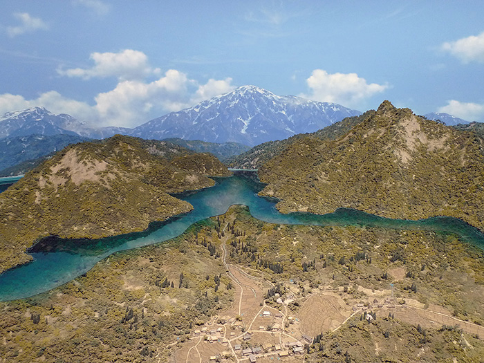 縮尺500分の1。1956(昭和31)年田子倉ダムの建設にともない水底に沈んだ山村を模型で復元。