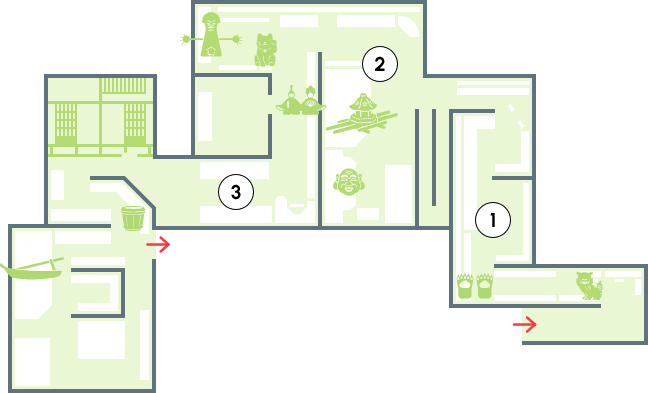 わたしたちのくらしはどのようなもので、どう変わったのか? 身近なおせちや名産品、神様や妖怪といった不思議なものに対する恐れと祈り、幸せを願う祭りやおまじない、自然と向きあい生きる技と知恵など、昔につながる今を紹介しています。