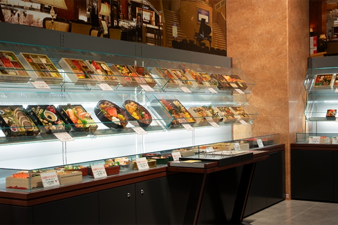 ある年のデパートのおせち料理売り場を再現! メニューがどんどん増えていって、時代は「作るおせち」から「買うおせち」へ。それにしても、こんな豪華なの、食べたことないなあ!