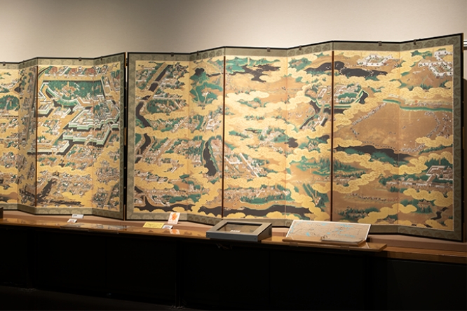 17世紀前半の江戸の町をうつした「江戸図屏風」。その中に3代将軍・徳川家光がところどころに隠れています。明るいところで365日いつでもじっくりみられるのは、レプリカだからこそ!の贅沢。